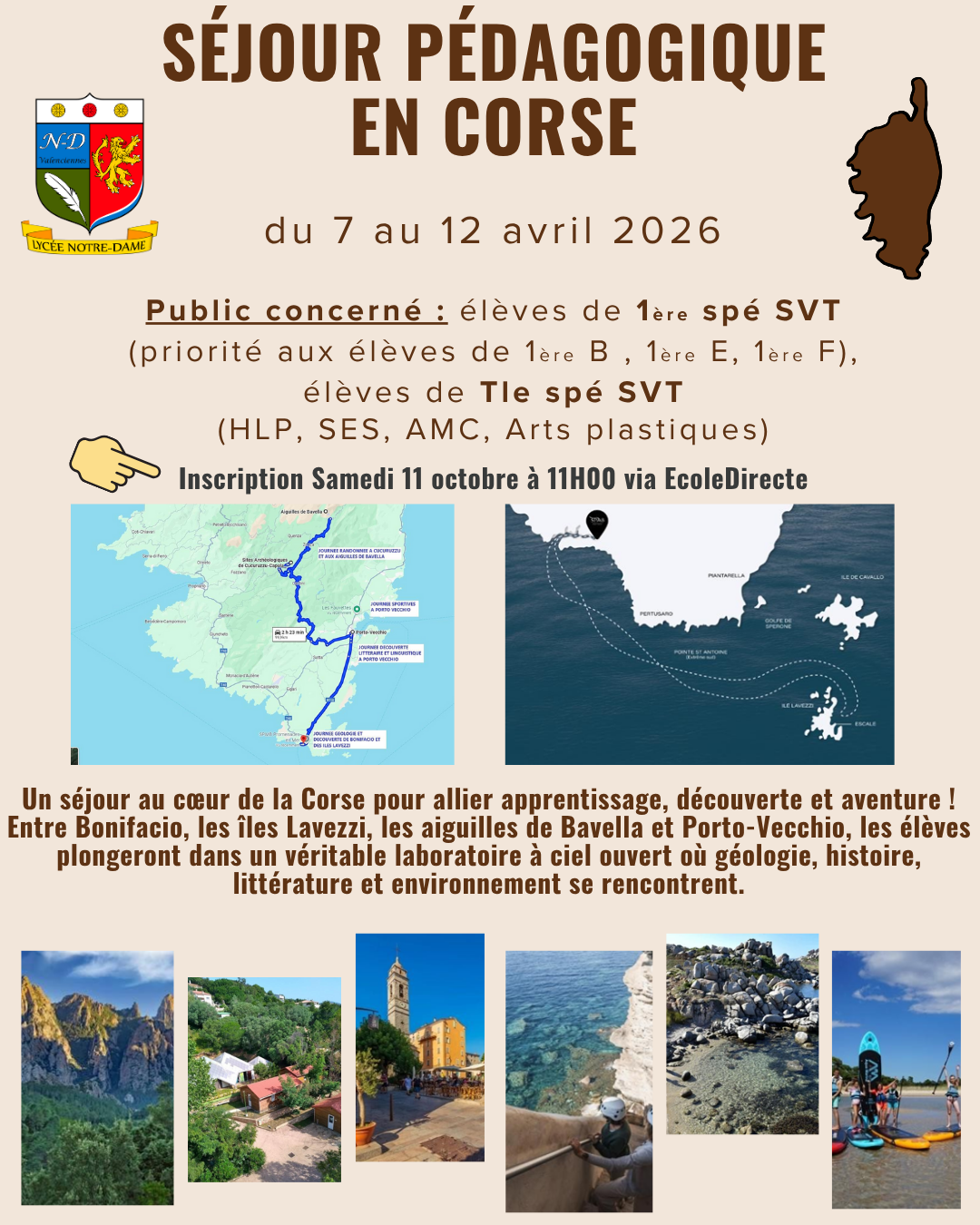 Entre Bonifacio, les îles Lavezzi, les aiguilles de Bavella et Porto-Vecchio, les élèves plongeront dans un véritable laboratoire à ciel ouvert où géologie, histoire, littérature et environnement se rencontrent.