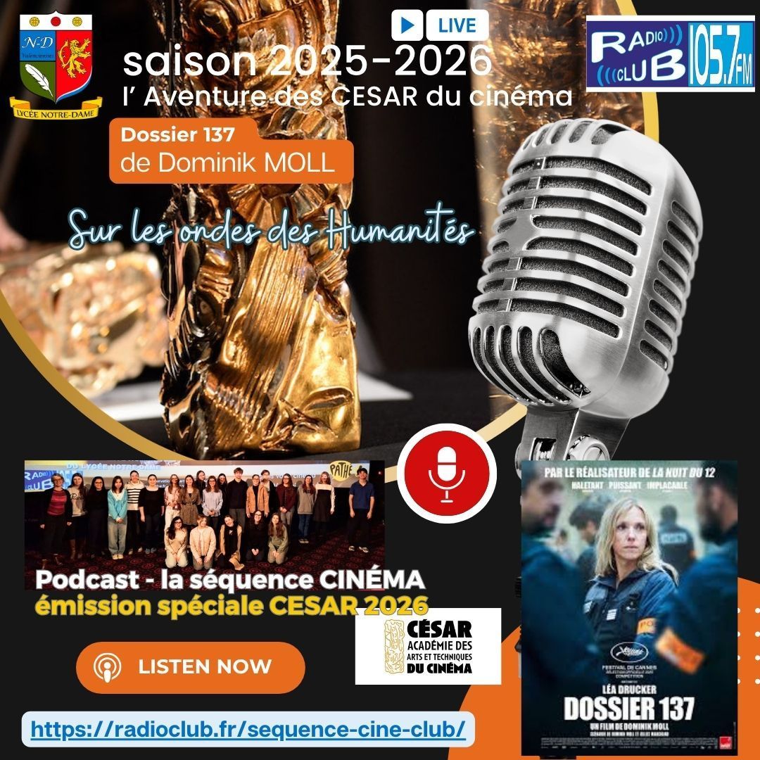 L’Estaminet est au cinéma Pathé Valenciennes pour une émission spéciale César des Lycéens avec le Lycée Notre-Dame Valenciennes. Les terminales HLP sont membres du jury des César des Lycéens avec le Ministère de l’Education et de la Culture. Ces lycéens nous parlent et critiquent les films en compétition pour les César 2026 catégorie Meilleur film : « Nouvelle vague », « Dossier 137 », « Un simple accident », « La petite dernière » et « L’attachement ».